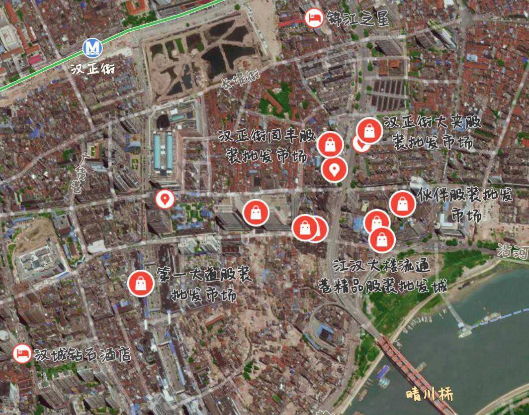 汉正街是汉口历史上最早的中心街道,是万商云集、商品争流之地。长江最大的支流汉水,发源于陕西省,由此注入长江,在很早以前,陕西省的商人就乘船顺流而下,将货物贩运于汉正街中转。汉正街最初是由货物集散批发而发展起来的。汉口之名可以说是因陕西商贩而得名,即汉水入长江口。而汉口的繁盛,与汉正街分不开。主要集中在三曙街、广货巷、大夹街沿线及全新街周边,拥有中心商城、老三镇服装大楼两座大型服装室内市场。经营面积约会万平方米,经营户近2000户。其中位广货巷的"名品街一条街"专营品牌服装,荟萃了包括"雅戈尔"、"步森"、"杉杉"国内知名品牌。