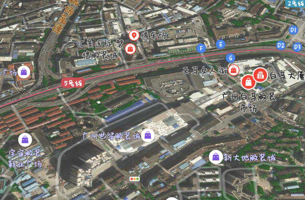 白马服装批发市场是由广州市城市建设开发集团投资建设,市场位于紧邻广州火车站的站南路,现有建筑面积60000平方米,共10层,有4层商场,5层写字楼,1层地下停车场。广州白马服装批发市场开办于1993年,由广州白马服装批发市场有限公司经营管理。市场配置中央空调、客货电梯、安全监控系统、消防系统、宽带网等现代设施。商场装饰美观,通道宽敞,附设时装表演广场、储蓄所、商务中心、托运站、停车场、快餐店等配套服务设施。广州白马服装批发市场是广州地区规模最大、装修最好、配套最完善、管理最规范、交易量最大的中高档服装市场。在市场内经营的业户有2000多户,既有珠江三角洲地区、浙江、福建乃至全国各地服装企业,也有香港、台湾的厂商。白马服装批发市场既是中、高档服装的现货批发、零售中心,也是服装品牌连锁加盟中心。批发零售、看样下单、专卖代理、连锁加盟等多种交易方式可供选择。女装、男装,套装、晚装、休闲装、唐装,衬衫、外套、大衣、内衣品种齐全。服装市场自开业以来,市场辐射能力不断增强。客商遍布黑龙江、新疆、内蒙、西藏等地的全国30个省市、自治区。近年来辐射面更是越过国界漫向国际直达五大洲,日均客流量达数万人,年交易额均在20亿元以上,在广州地区超亿元市场评比中排名第一。市场以"环境舒心、服务贴心、经营放心、不断创新"为服务质量方针,获得ISO9001:2000国际质量管理体系认证,连年荣获“全市文明市场”、“全省文明市场”、“全国文明市场”及“全省十佳文明市场”、“消费者满意市场”等称号,同时被广州市委、市政府评为“广州地区百家最佳服务单位”、“广州市文明单位”。白马服装批发市场,是广州服装批发业老大,成熟女装居多,价位为同类服装批发市场最高,款式偏向成熟装,时装款式也很多,国内有很多女装品牌都是从这里起家转向专卖的,所以想要找高品质的女装可以到白马服装批发市场逛逛。其中一楼,四楼,五楼的女装样式和质量都比较好,价位也较高,大都是大厂出名,质量不错,部分女装的款式也很精致时尚,大部分都是厂家兼营写字楼跟总批发,而二楼,三楼主要是一些小作坊出品,还有白马服装批发市场地下的“西效商场”主要是做女裤跟小衫,档次低很多,样式一般,但胜在款式大众,销量大,六楼主要是中高档男装.