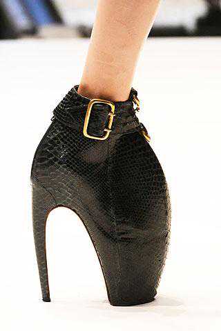 在2010年春夏巴黎时装周上,向来特立独行的他送上的是一系列让人瞠目结舌的“恨天高”,LadyGaga是AlexanderMcQueen作品的骨灰粉,McQueen的旷世杰作“Armadillo”(驴蹄鞋)就是她的心头好,甚至在经历过几次不幸跌倒后,她依然继续选择它们出席活动。